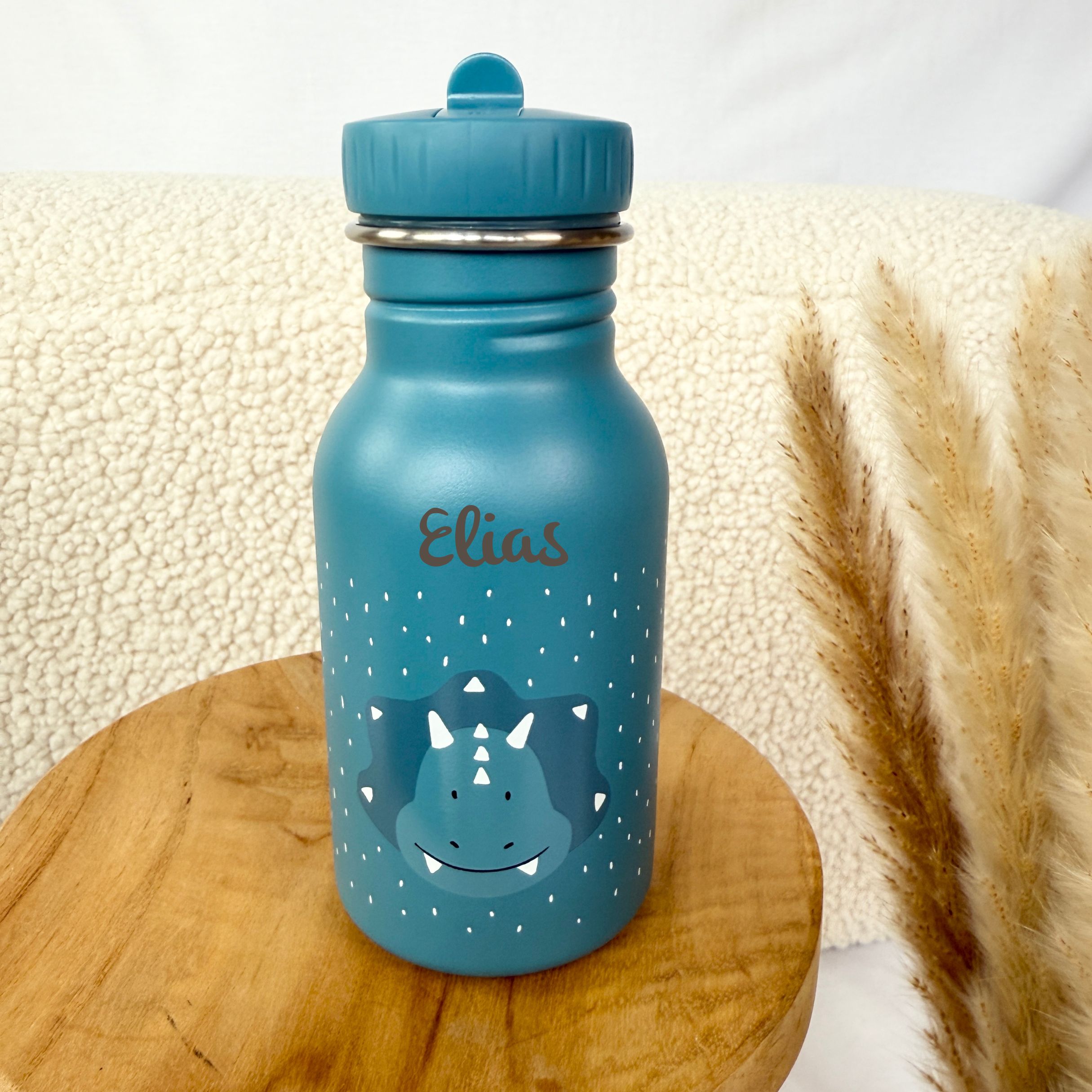Kindertrinkflasche mit Namen, Trixie Trinkflasche Kinder, Edelstahl Trinkflasche Triceratops